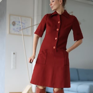70s Vintage brick red wool short sleeve winter midi dress