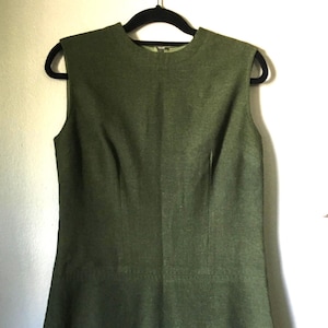 Vintage 1960s Wool Dress Hand Made Olive Green Fitted Darts Size S Retrocorrect Womenswear