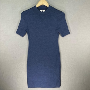 GAP Women Navy Blue Mock Neck Short Sleeve Knit Dress Extra Fine Merino Wool XS