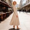 This long winter dress blends comfort with seasonal elegance. Its warm fabric drapes softly, making it ideal for cold-weather outings. Perfect for cozy dinners, gatherings, or everyday wear.