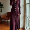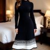 This long winter dress blends comfort with seasonal elegance. Its warm fabric drapes softly, making it ideal for cold-weather outings. Perfect for cozy dinners, gatherings, or everyday wear.