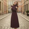 This long winter dress blends comfort with seasonal elegance. Its warm fabric drapes softly, making it ideal for cold-weather outings. Perfect for cozy dinners, gatherings, or everyday wear.
